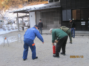 消火器を使って消火。