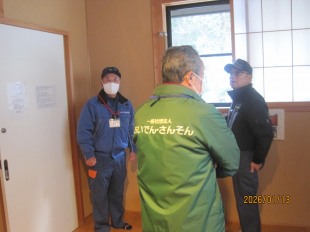 皆さんが戻った時に少しでも温まれるように、すげの里を暖かく整えておきます。